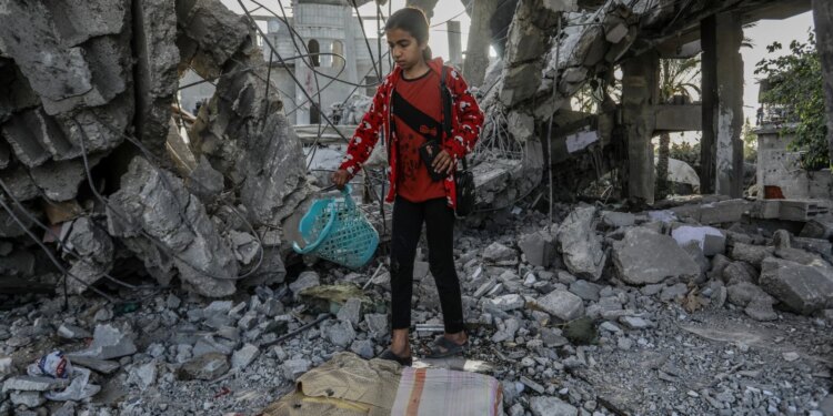 Una niña entre escombros en la Ciudad de Gaza. / Crédito: Shutterstock.