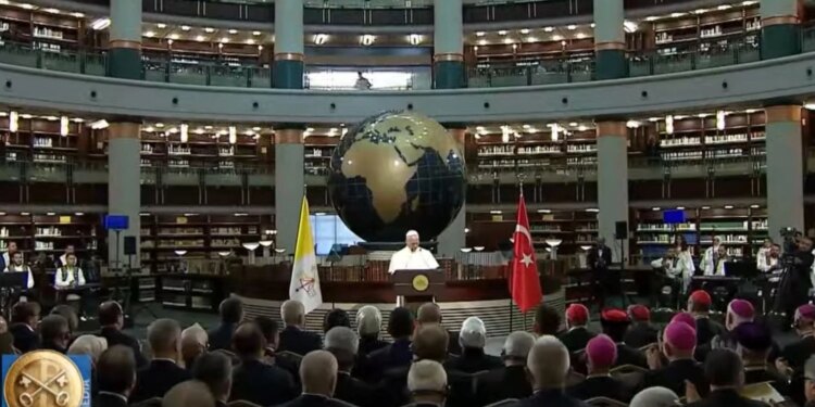 Encuentro del Papa León XIV con las autoridades y sociedad civil en Turquía / Crédito: Captura de pantalla