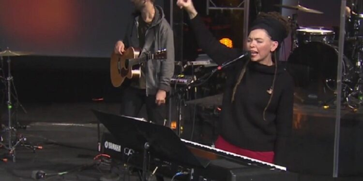 «I can hear the rythm of the Lion of the Tribe of Juda» (puedo oír el ritmo del León de la Tribu de Judá). «People, get ready, Jesus is coming» (gente, preparaos, Jesús está viniendo). «Está vivo, está vivo».