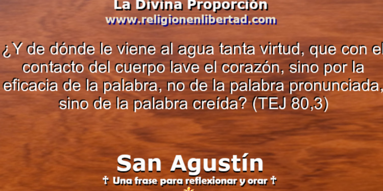 ¿Y de dónde le viene al agua tanta virtud, que con el contacto del cuerpo lave el corazón, sino por la eficacia de la palabra, no de la palabra pronunciada, sino de la palabra creída? 🔹San Agustín. Tratado del Evangelio de San Juan 80, 3🔹