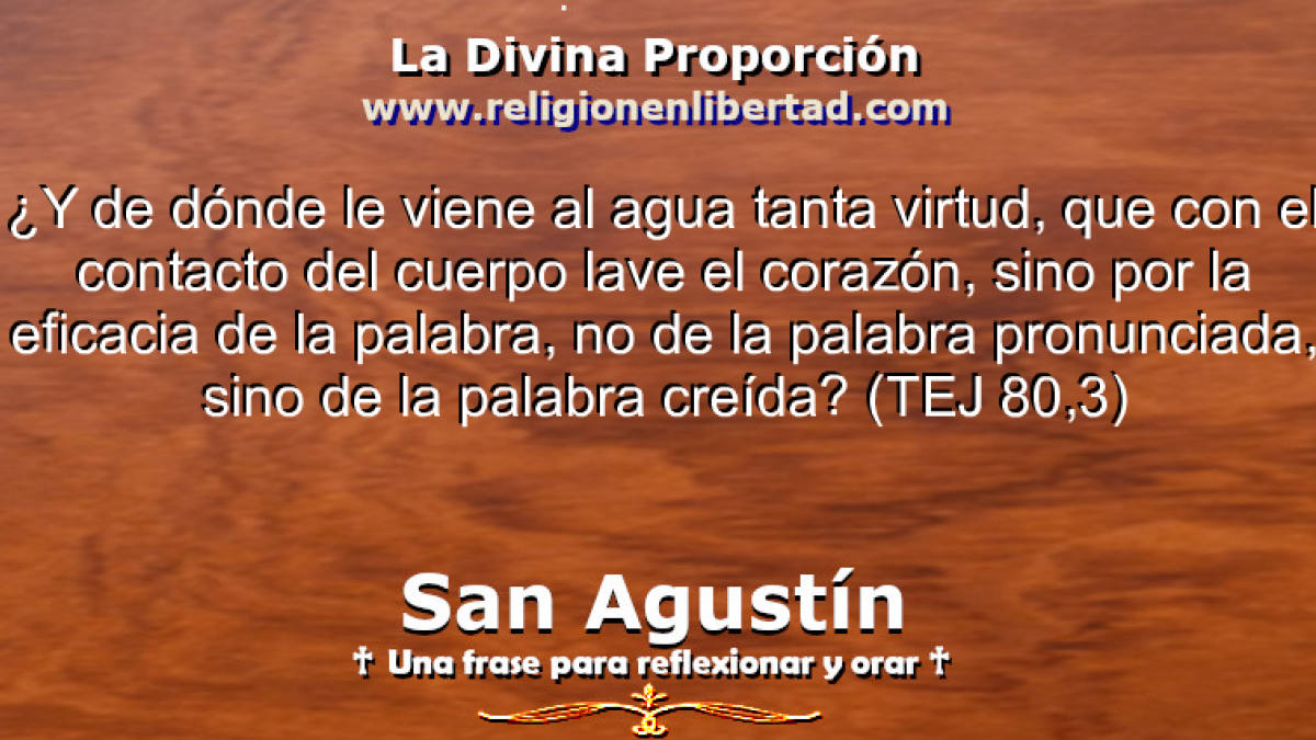 ¿Y de dónde le viene al agua tanta virtud, que con el contacto del cuerpo lave el corazón, sino por la eficacia de la palabra, no de la palabra pronunciada, sino de la palabra creída? 🔹San Agustín. Tratado del Evangelio de San Juan 80, 3🔹