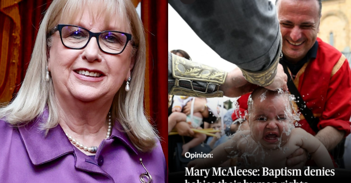 Mary McAleese, presidenta de Irlanda hasta 2011, ha escrito un artículo en la prensa irlandesa atacando con furia la práctica católica de bautizar a los niños como una grave vulneración de su libertad religiosa. McAleese es «católica» y ha recibido múltiples honores de entidades católicas.