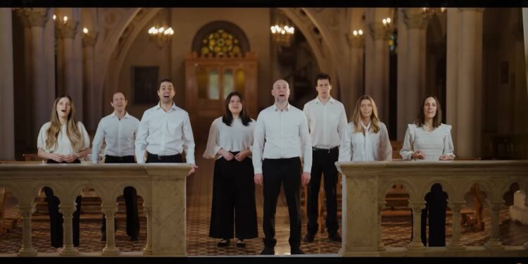 [5:38] El grupo coral chileno Canto Católico interpreta el tradicional himno Cantemos al Amor de los Amores, compuesto por Ignacio Busca Sagastizábal para el Congreso Eucarístico Internacional de Madrid en 1911, con letra del padre Restituto del Valle. Es uno de los temas más populares en el mundo hispanohablante para honrar al Santísimo Sacramento.