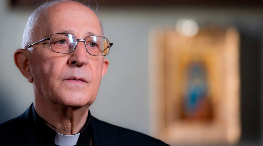 El Cardenal Filoni durante la entrevista. Foto: Daniel Ibáñez / ACI Prensa