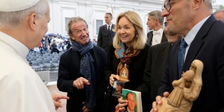 Josepmaria Anglès, el director de la película Solo Javier, y una delegación del equipo impulsor de esta película, se reunieron brevemente con el Papa León XIV en Roma este miércoles 22 de octubre, tras la audiencia general en la Plaza de San Pedro, y le regalaron un libro con la historia real de Javier Sartorius Milans del Bosch, el protagonista de la película.