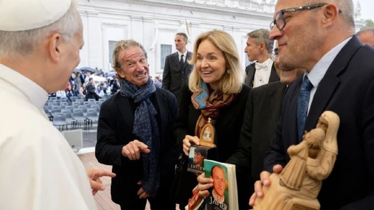 Josepmaria Anglès, el director de la película Solo Javier, y una delegación del equipo impulsor de esta película, se reunieron brevemente con el Papa León XIV en Roma este miércoles 22 de octubre, tras la audiencia general en la Plaza de San Pedro, y le regalaron un libro con la historia real de Javier Sartorius Milans del Bosch, el protagonista de la película.