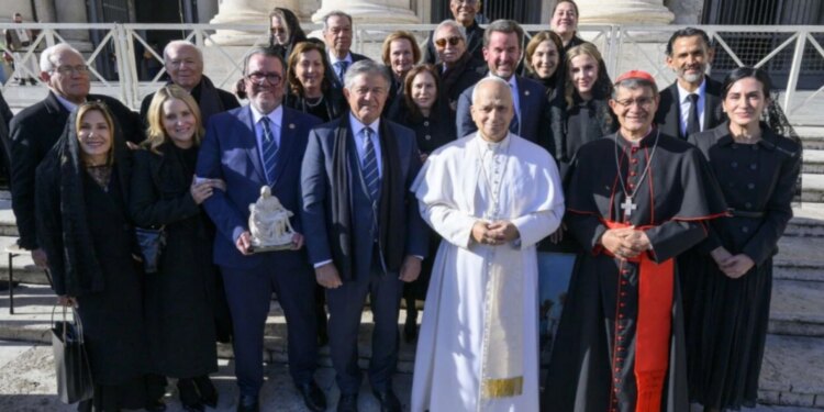 La comisión de la Junta de Beneficencia de Guayaquil en su encuentro con el Papa León XIV, el 26 de noviembre de 2025. / Crédito: Junta de Beneficencia de Guayaquil.