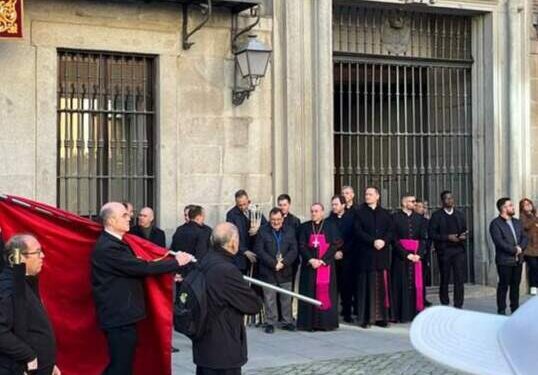 En su paso por la Plaza de la Villa, la procesión se paró ante el alcalde de Madrid, José Luis Martínez Almeida.