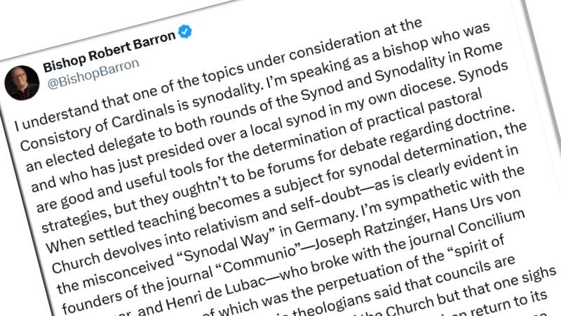 «Cuando la enseñanza establecida se convierte en objeto de determinación sinodal, la Iglesia degenera en relativismo y duda de sí misma, como se evidencia claramente en el malogrado ‘Camino Sinodal’ en Alemania».