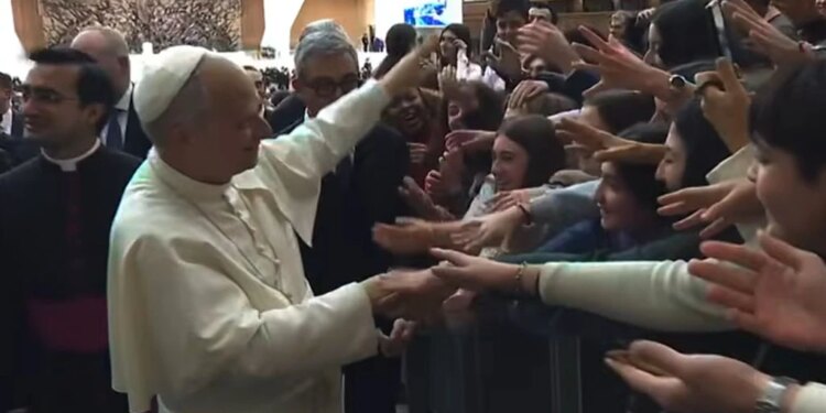 El Papa León XIV saluda a algunos jóvenes de Roma en el Aula Pablo VI en el Vaticano este sábado 10 de enero. / Crédito: Vatican Media.
