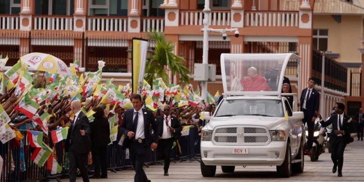 El Papa recorrió en papamóvil las calles de Guinea Ecuatorial / Crédito: Patrick Leonard/EWTN News