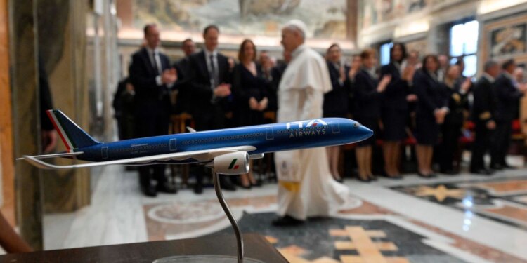 El Pontífice con los directivos y trabajadores de la compañía de bandera italiana ITA Airways / Crédito: Vatican Media