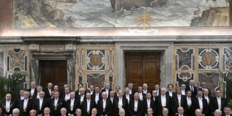 El Papa, con los gentilhombres en la Sala Clementina del Palacio Apostólico / Crédito: Vatican Media