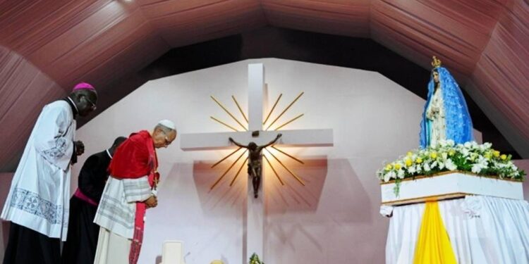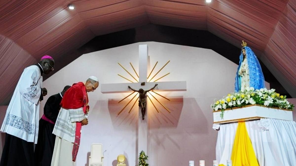 El último acto de este domingo del Papa en Angola fue el rezo del Rosario en el santuario de Mama Muxima, tras el cual voló en helicóptero hasta Luanda, la capital del país, como había hecho por la mañana dejando una imagen menos habitual que las que le sitúan en aviones.