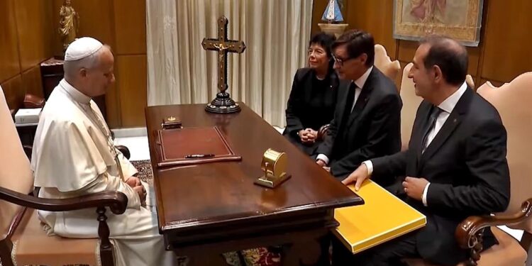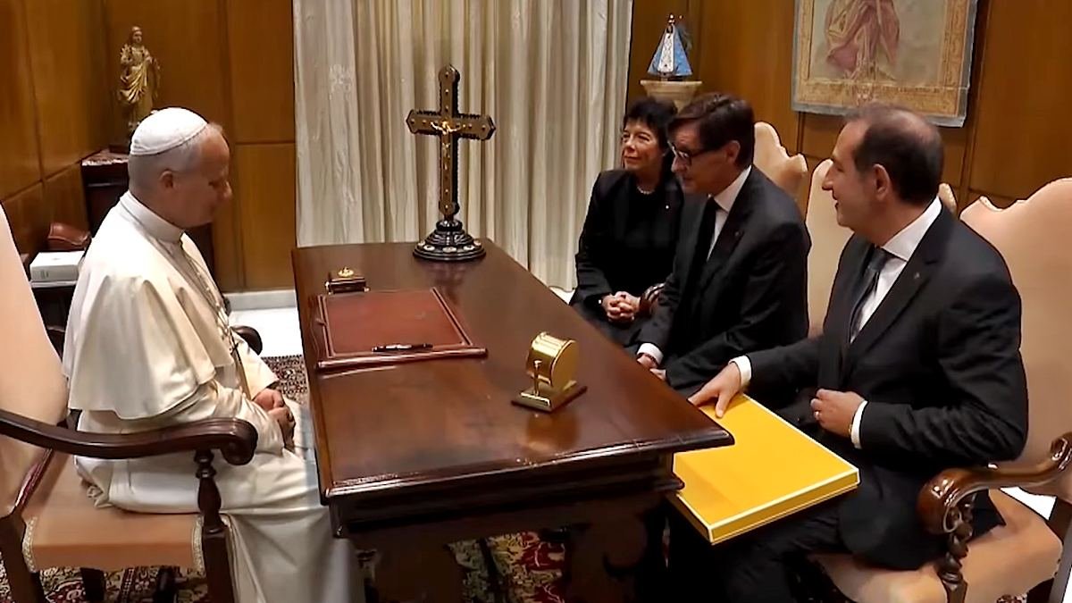 [00:41] León XIV recibió este miércoles al presidente de la Generalitat de Cataluña, Salvador Illa, quien acudió acompañado de su conseller de Justicia, Ramón Espadaler. Fueron introducidos por la embajadora de España ante la Santa Sede y ex ministra de Educación, Isabel Celaá.