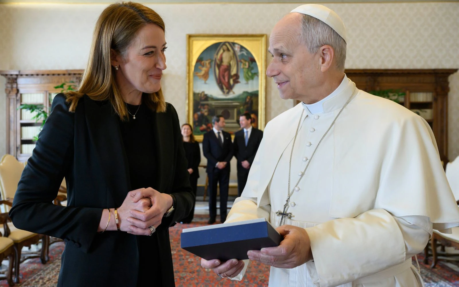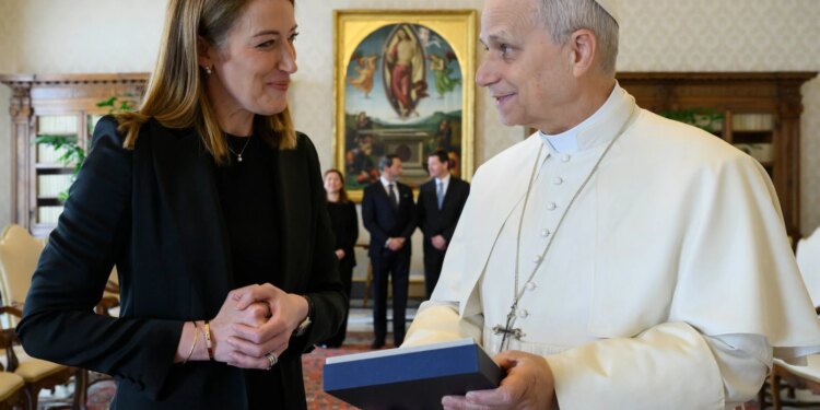 El Papa León XIV junto a Roberta Metsola / Crédito: Vatican Media