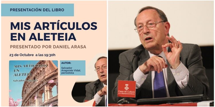 Salvador Aragonés. Periodista y profesor emérito de la Universitat Internacional de Catalunya. Ex director de Europa Press de Cataluña. Director del programa Economia i Valors de Ràdio Estel. Presentó su libro recientemente en el oratorio de Bonaigua de Barcelona.