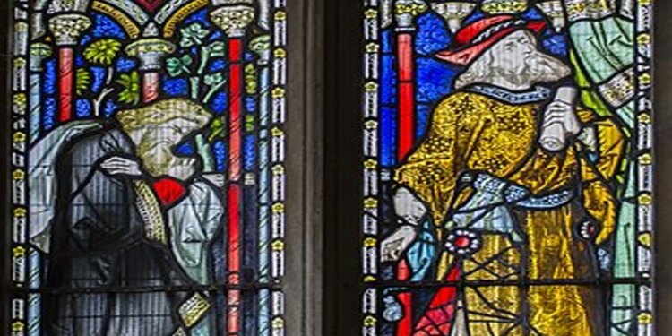 El fariseo y el publicano, vitral Hardman de 1874, en la iglesia de St James en el Reino Unido. / Crédito de la foto: Jules & Jenny (CC BY 2.0)