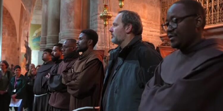 Debido a la guerra de Israel con Irán, y a los bombardeos, las autoridades israelíes han restringido mucho el acceso de los fieles al Santo Sepulcro, pero los frailes franciscanos siguen realizando allí cada día sus misas, procesiones y oraciones litúrgicas, igual que las otras comunidades cristianas.
