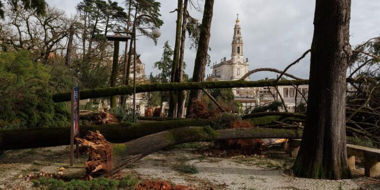 Uno de los lugares afectados fue el santuario de Fátima. Los fuertes vientos que soplaron, con ráfagas que alcanzaron los 140 kilómetros por hora, derribaron cientos de árboles en diversas zonas de este lugar mariano. Los más afectados fueron los cedros y pinos en las avenidas del Recinto de Oración, pero también se reportaron árboles caídos detrás de la Basílica de Nuestra Señora del Rosario y en la zona de Valinhos.