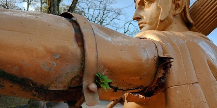 Deterioro de una de las esculturas del viacrucis monumental del Santuario de Nuestra Señora de Lourdes (Francia). / Crédito: SNDL.