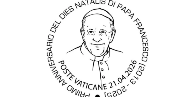 El diseño del matasellos está inspirado en un retrato fotográfico del Papa Francisco, acompañado por las leyendas “Primer aniversario del Dies Natalis de Su Santidad el Papa Francisco (2013-2025)” y “Poste Vaticane – 21.04.2026”.