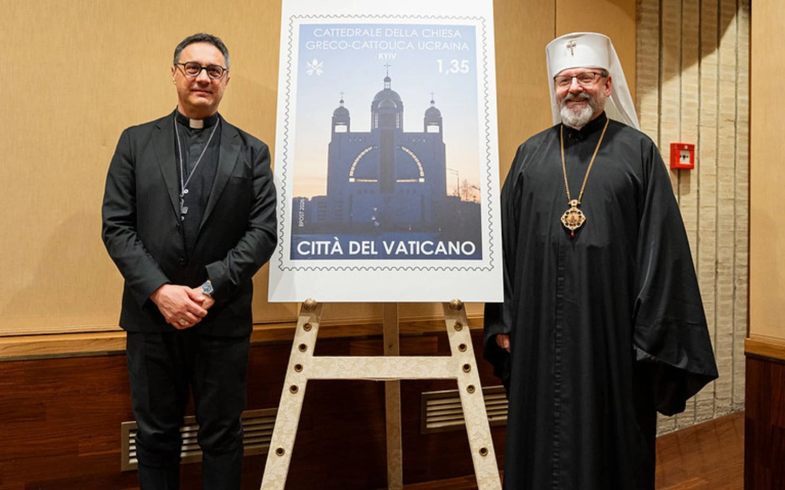 Mons. Emilio Nappa y Su Beatitud Sviatoslav Shevchuk en la presentación del sello el 26 de febrero / Crédito: Secretaría del Arzobispo Mayor de la Iglesia Greco-Católica Ucranian