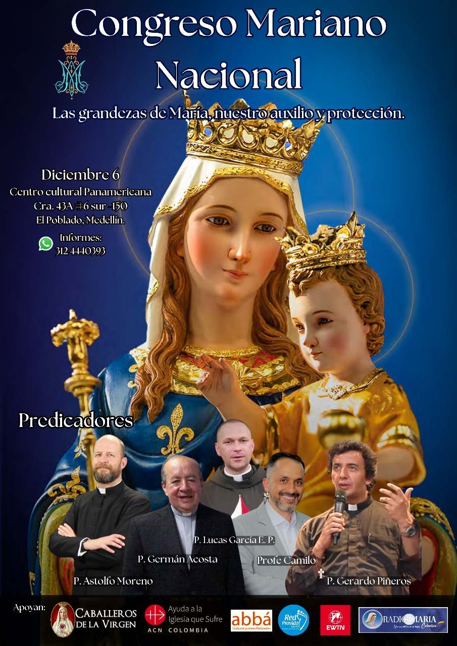 Redacción (24/10/2025 10:29, Gaudium Press) El próximo 6 de diciembre, a muy poco de la fiesta de la Inmaculada Concepción, se realizará en Medellín-Colombia, el “Congreso Mariano Nacional – Las grandezas de María, nuestro auxilio y protección”.