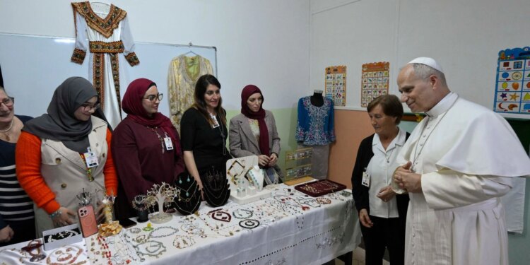 Fue una visita privada, pero uno de los momentos más entrañables que compartió el Pontífice con esta comunidad se ha hecho viral en las redes sociales. Sor Lourdes Miguélez, que lleva en Argelia más de 53 años, condujo al Papa hasta el taller del Centro de Acogida y Amistad, donde las religiosas enseñan a mujeres musulmanas sin apenas recursos a coser y a elaborar piezas de artesanía y joyería. Allí, algunas de ellas mostraron al Papa,…