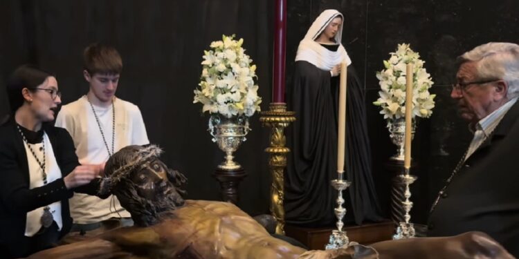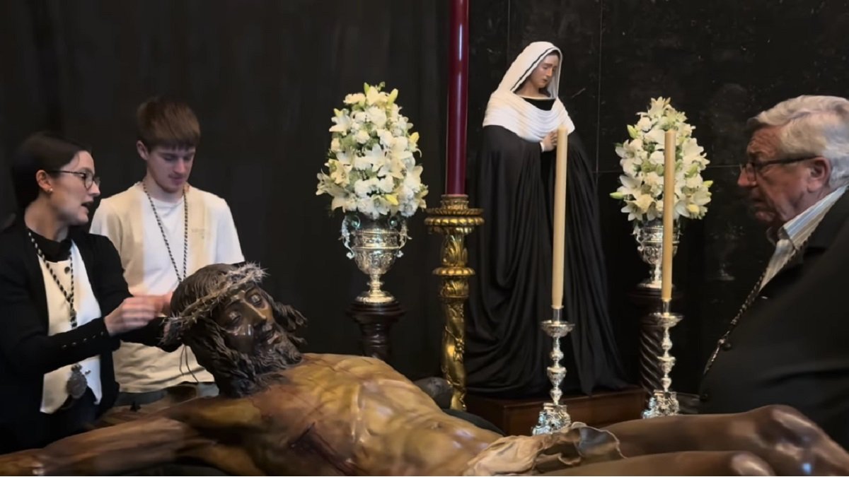 Ramón Gómez Ravassa (Málaga, 1942) es congregante de Mena desde los nueve años. Junto a sus nietos, Marta Gómez de Lara y Nono Gómez Rodríguez, es el encargado de hacer cada Cuaresma la corona que lleva el popular Cristo de Mena o Cristo de la Buena Muerte, al acercarse la Semana Santa malagueña.