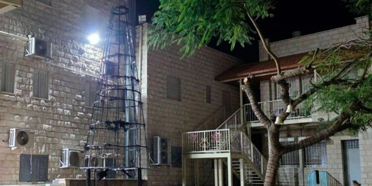 Árbol de Navidad quemado en la parroquia Santísimo Redentor de Jenín. / Crédito: Vatican News.