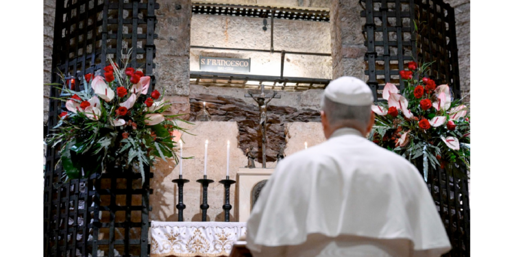(ZENIT Noticias / Asís, 20.11.2025).- Por la mañana del jueves 13 de noviembre, el Papa León XIV realizó una visita privada a la tumba de San Francisco. El Santo Padre se detuvo un momento para orar en silencio ante la tumba. La visita, que tuvo lugar en un ambiente de recogimiento, contó con la presencia de la comunidad de frailes del Sacro Convento, reunidos en oración con él.