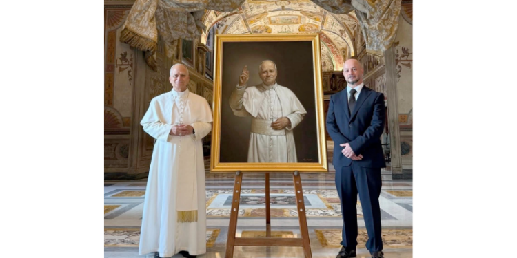 (ZENIT Noticias / Ciudad del Vaticano, 22.02.2026).- Al final de la penúltima semana de febrero de 2026, el pintor de origen Tarento, Roberto Ferri, entregó personalmente al Papa León XIV la pintura-retrato oficial realizada por él mismo.