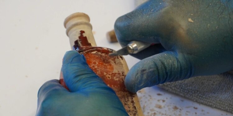 La botella con el documento sobre un sacerdote asesinado en 1936 en España fue procesada por un arqueólogo. / Crédito: Diócesis de Alcalá de Henares.