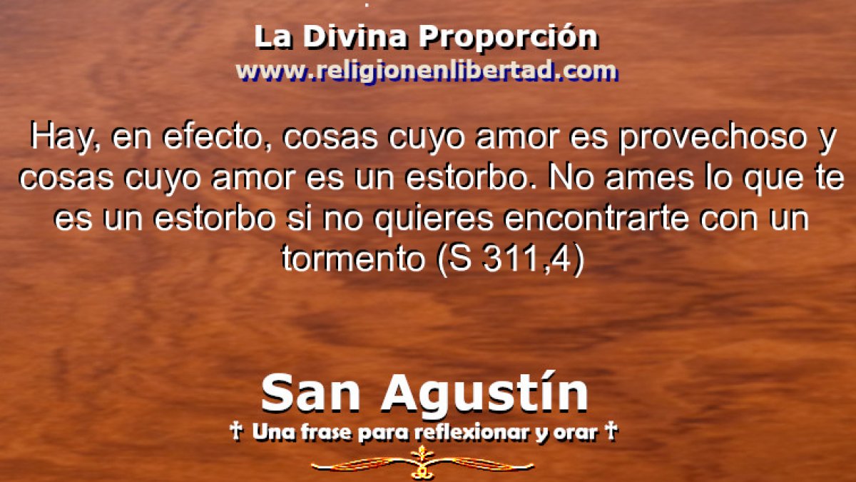 Hay, en efecto, cosas cuyo amor es provechoso y cosas cuyo amor es un estorbo. No ames lo que te es un estorbo si no quieres encontrarte con un tormento 🔹San Agustín. 311, 4🔹