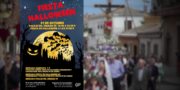 Este 31 de octubre, las hermandades del Santísimo Cristo de la Piedad y de Nuestra Señora de la Natividad celebrarán en Guadamur, Toledo, una “Fiesta de Halloween”, con pasaje del terror, música, consumiciones y hasta un sorteo de jamón. El cartel promocional muestra calabazas tenebrosas, murciélagos y castillos oscuros, invitando a participar en una noche que nada tiene que ver con el sentido cristiano de estas fechas.