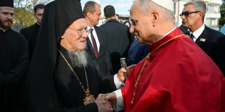 El Papa saluda a Bartolomé I en Iznik, durante su viaje a Turquía / Crédito: Vatican Media