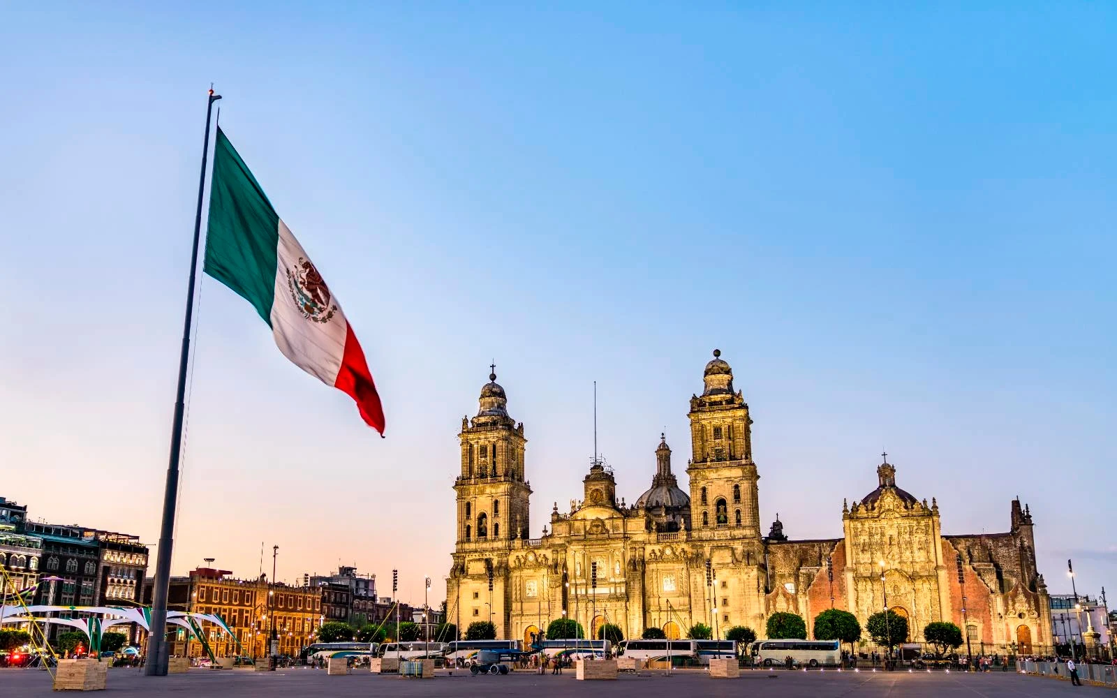 Catedral Metropolitana de la Arquidiócesis Primada de México vista desde la Plaza de la Constitución, conocida como «Zócalo», en el centro de Ciudad de México. / Crédito: Leonid Andronov/Shutterstock.