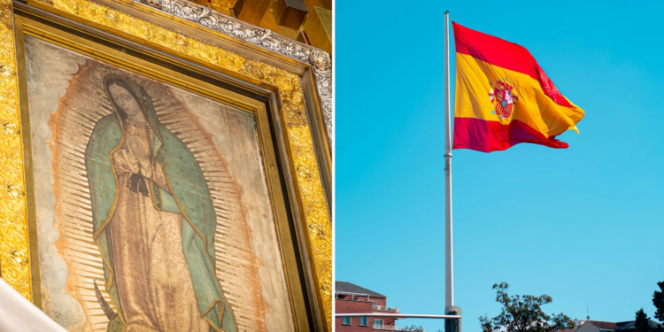 Imagen de la Virgen de Guadalupe y la bandera española / Crédito: Canva