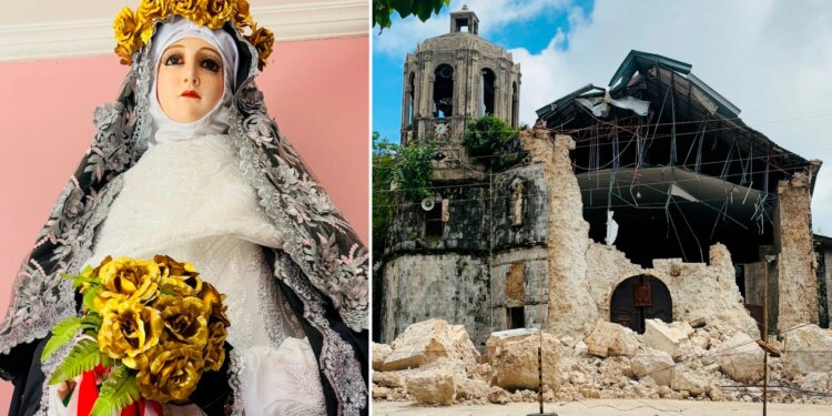 Una imagen de Santa Rosa de Lima fue hallada intacta dentro del santuario dedicado a la santa en la provincia filipina de Cebú, el cual ha quedado en ruinas a causa del terremoto de 6.9 grados que golpeó el país la semana pasada.