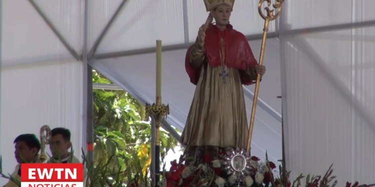 Imagen de Santo Toribio de Mogrovejo en la Misa de apertura de su Año Jubilar en Zaña, donde falleció el 23 de marzo de 1606. / Crédito: EWTN Noticias