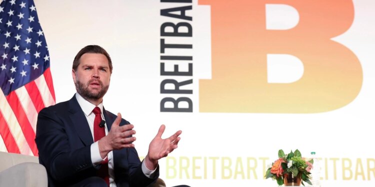El vicepresidente de Estados Unidos, JD Vance, participa en una conversación junto a la chimenea con el jefe de la oficina de Washington de Breitbart, Matt Boyle, en el Auditorio Andrew W. Mellon el 20 de noviembre de 2025, en Washington D. C. / Crédito: Tasos Katopodis/Getty Images.