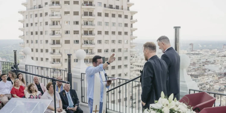 Las fotografías, difundidas en la web de los fotografos del evento, muestran una ceremonia celebrada en la azotea de un edificio de Madrid, con vistas a la catedral de la Almudena. En el acto, una pareja del mismo sexo aparece «celebrando su matrimonio» mientras el cura Josete, amigo íntimo del cardenal Cobo, y responsable hoy de la formación de los profesores de religión en el Instituto de Teología a Distancia, bendice la unión revestido con una estola.
