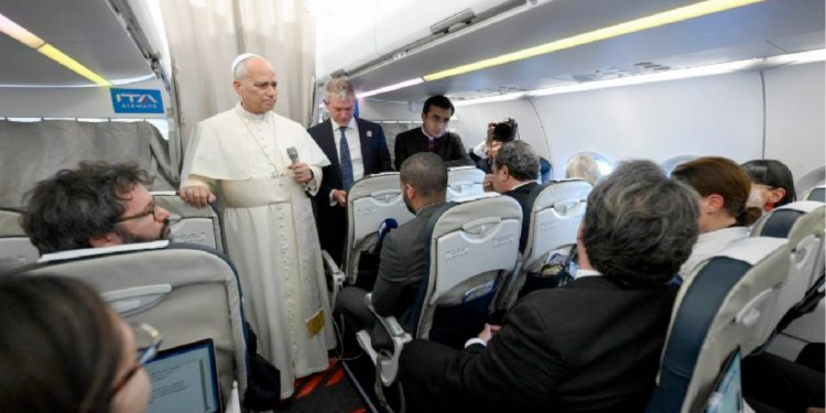 (ZENIT Noticias – Vatican Media / Beirut-Roma, 02.12.2025).- «En primer lugar, quiero dar las gracias a todos los que han trabajado tanto. Me gustaría que transmitieran este mensaje también a los demás periodistas, tanto en Turquía como en el Líbano, que han trabajado para comunicar los importantes mensajes de este viaje. Todos ustedes también merecen un fuerte aplauso por este viaje». Así saludó el Papa León XIV a los 81 periodistas presentes en el vuelo de regreso de Beirut a Roma y respondió a las preguntas de algunos de ellos, hablando en inglés, italiano y español. El viaje, Oriente Medio, la guerra en Ucrania, la presencia de Europa en las negociaciones de paz, la situación de Venezuela… Estos fueron algunos de los temas abordados por el Pontífice, que recibió como regalo de un corresponsal libanés un cuadro pintado a mano en directo por televisión, en…