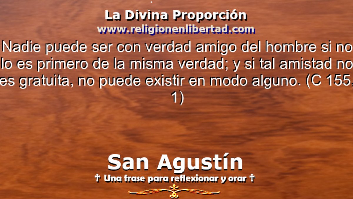 Nadie puede ser con verdad amigo del hombre si no lo es primero de la misma verdad; y si tal amistad no es gratuita, no puede existir en modo alguno 🔹San Agustín. Carta 155, 1🔹