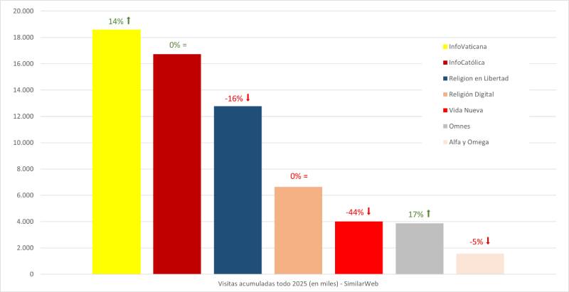 - InfoVaticana, InfoCatólica y Religión en Libertad lideran un año más los índices de audiencias en visitas, páginas vistas y usuarios, respectivamente. InfoVaticana recupera la primera posición.
