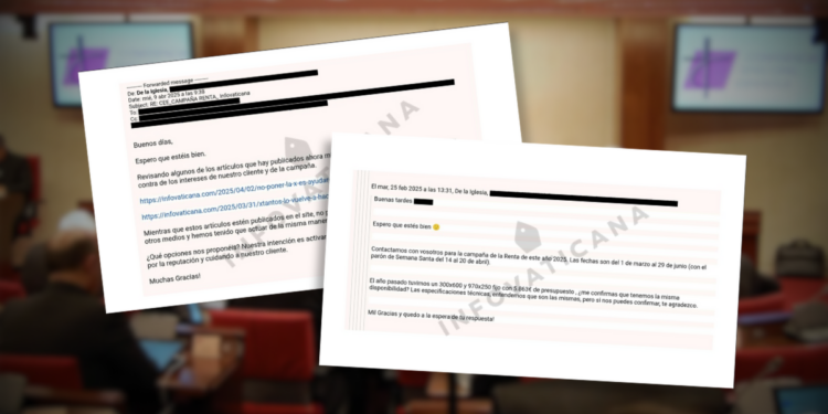 En febrero de 2025, la agencia de medios que gestiona la publicidad digital de la Conferencia Episcopal Española contactó con Infovaticana, medio online líder en audiencia de información eclesial en español, para ofrecer una campaña publicitaria. La iniciativa no partió de Infovaticana, sino de la propia estructura publicitaria de la Conferencia Episcopal. En ese primer contacto no se planteó objeción alguna a los contenidos editoriales y el intercambio fue estrictamente comercial: fechas, formatos y condiciones económicas por un importe cerrado de 5.683 euros. Sin embargo, semanas después, en abril, aquella propuesta derivó en una exigencia expresa: retirar artículos críticos como condición previa para activar el pago. Ese fue el precio puesto a la censura.
