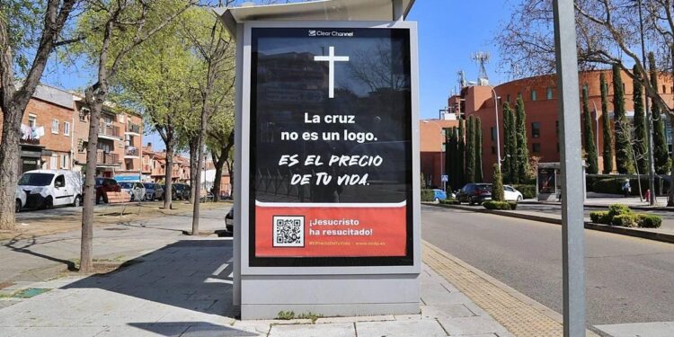 Llega la Semana Santa y la Asociación Católica de Propagandistas (ACdP) ha colocado en puestos publicitarios de la red de transportes públicos a la protagonista principal de estas fechas en su significación religiosa: la Cruz.