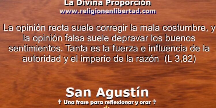 La opinión recta suele corregir la mala costumbre, y la opinión falsa suele depravar los buenos sentimientos. Tanta es la fuerza e influencia de la autoridad y el imperio de la razón 🔹San Agustín. Contra Fausto 22, 58)🔹