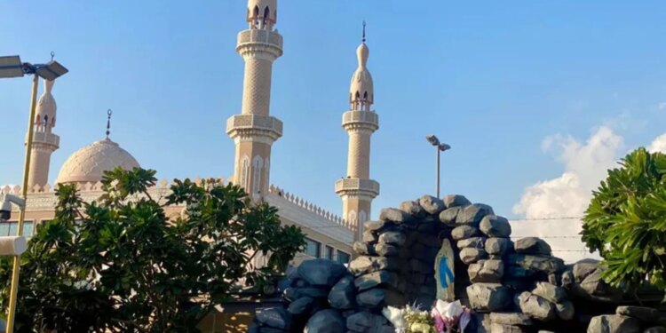 Una réplica de la gruta de Nuestra Señora de Lourdes en la iglesia católica de Santa María en Oud Metha, Dubái (Emiratos Árabes Unidos). / Crédito: Solène Tadié / National Catholic Register.